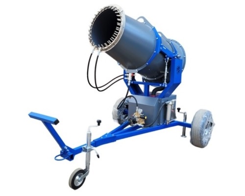 Пушки пылеподавления работают на основе распыления жидкости мелкими каплями, которые связывают частицы пыли и осаждают их на поверхности. Главным элементом оборудования является вентилятор, который создает поток воздуха, а специальная форсунка осуществляет распыление воды или рабочих растворов под давлением. Это обеспечивается за счет оптимального подбора размеров капель и направления потока воздуха.